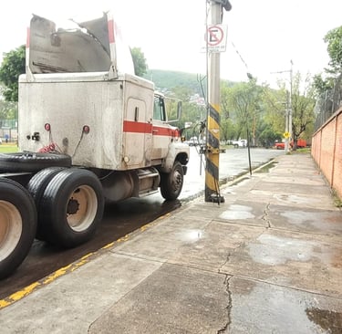 Nuestra solicitud es que se haga un recorrido con el personal encargado de atender nuestras solicitudes previas para que se dimensione el problema y se tomen acciones periódicas, tanto correctivas y preventivas para reubicar dichos vehículos a zonas especialmente diseñas para su operación, mantenimiento, maniobras y estacionamiento y se coloquen los señalamientos necesarios. Aun cuando se nos ha contestado que esas actividades se han llevado a cabo, no vemos absolutamente ningún cambio en el comportamiento de los dueños de dichos vehículos, ni señales nuevas de restricción, al contrario, se han removido recientemente varias de ellas por los mismos dueños de los tractocamiones. Necesitamos ayuda para resolver este problema. Proponemos que esos señalamientos puedan también ser indicados en la misma calle, es decir, pintándolos sobre la calle, lo cual evitaría su remoción y disminuiría los costos, aumentando las opciones de ingreso para el municipio y que además se incluye en los artículos 100 y 101 del reglamento de tránsito que estacionarse en rotonda o glorieta, esta prohibido.